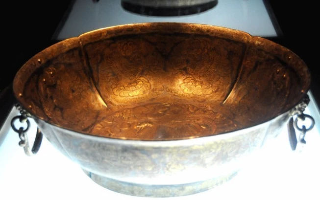 6、鎏金雙鴛團(tuán)花銀盆