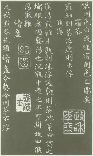 《煎茶水記》這是一本現(xiàn)存最早的專門論水評(píng)泉的著作,在陸羽《茶經(jīng)》的五之煮上進(jìn)行延展發(fā)揮,將適于烹茶的水進(jìn)行更為全面地剖析,整部書僅約900字,列出當(dāng)時(shí)唐代宜茶用水20處之多。
