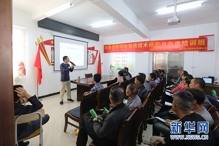 村民們正在接受茶葉相關(guān)知識的培訓(xùn)。新華網(wǎng) 李相博 攝